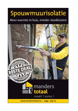 Spouwmuurisolatie Meer warmte in huis, minder stookkosten www.manderstotaal.eu • 0492 - 505 101