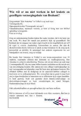 Zorgcentrum “Sint Antonius” in Volkel is op zoek naar: